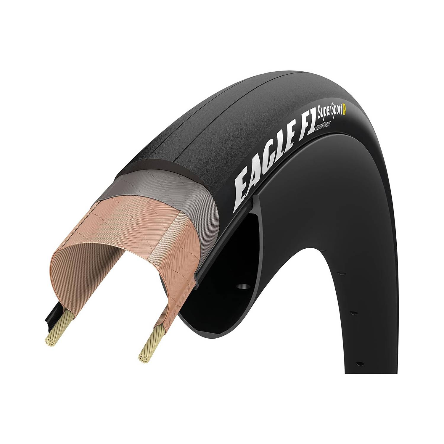 - El Eagle F1 SuperSport R presenta una baja resistencia a la rodadura combinada con un bajo peso y es el neumático de competición ideal para carreras en carretera, contrarreloj y triatlón.