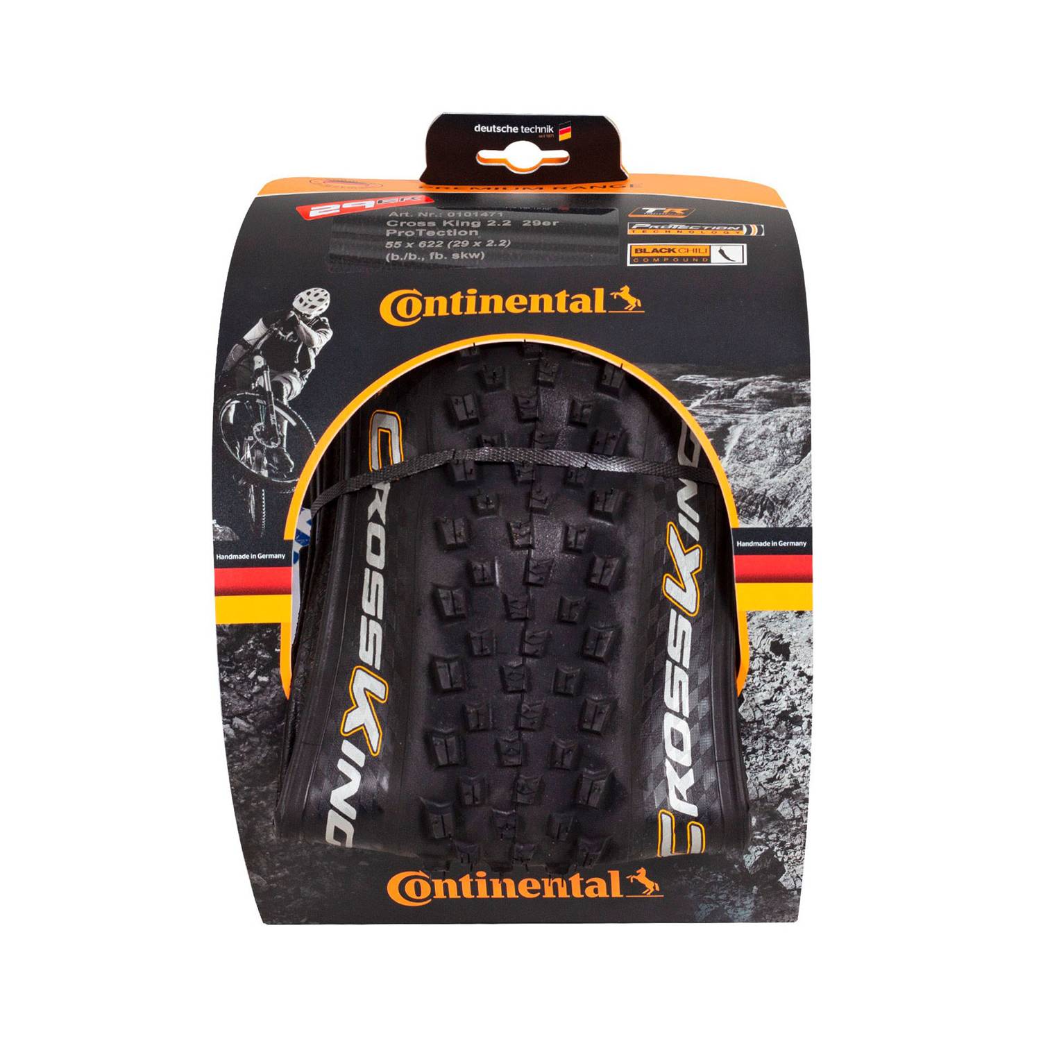 • La cubierta Continental Cross King es un neumático para MTB Cross Country fabricado con el compuesto Black Chili, que garantiza un excelente agarre con una baja resistencia a la rodadura.