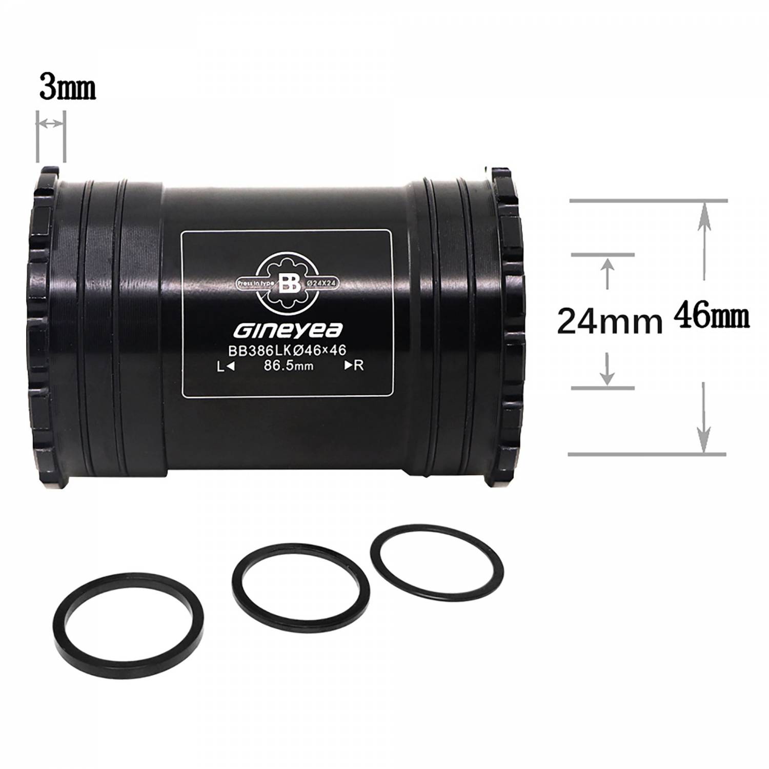 Cartucho pedalier Gineyea BB386ML - PressFit - 86/92x46 - Eje SH Ø24-24mm