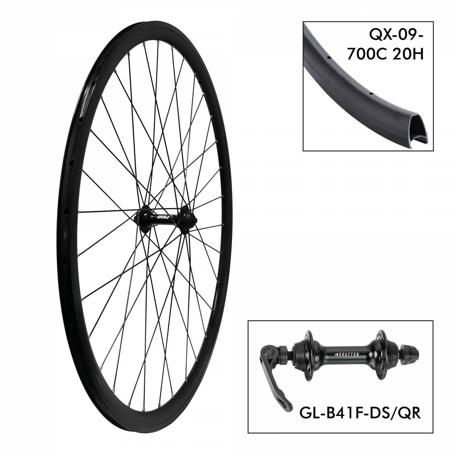 Rueda D. Krayton 700C 36H - B41F 9x100 Zapata QR alum.