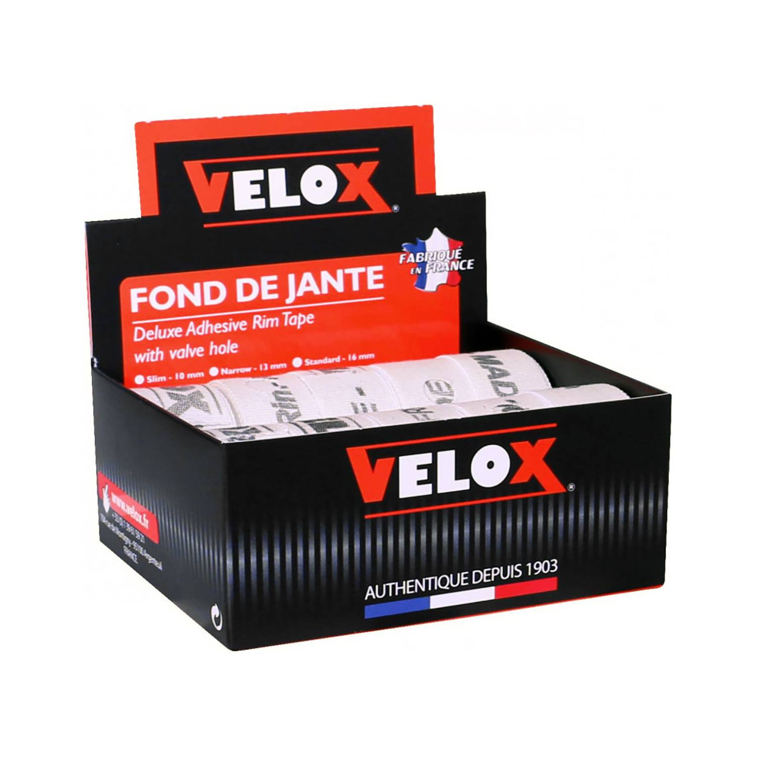 - El fondo de llanta Velox de algodón de alta resistencia ayuda a proteger la cámara de aire contra el desgaste y la fricción.